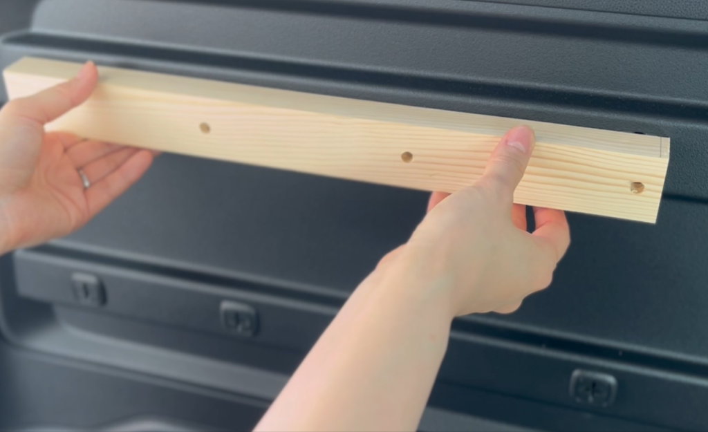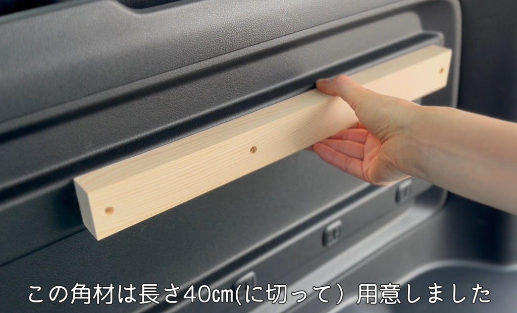 また、角材はのちにフリード+の荷室にあるユーティリティナット部分にネジで取り付けるため、ユーティリティナットの幅に合わせて穴あけをしてもらいます。