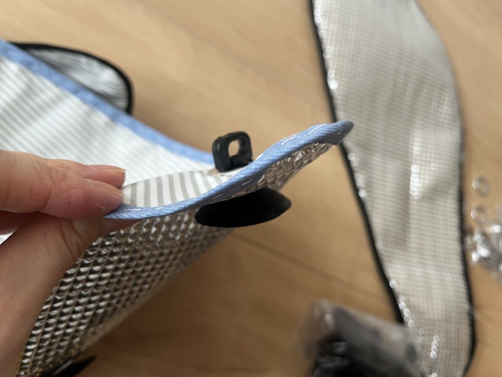 ハトメの金具が足りずに吸盤が少なかったのでうまく目隠しができなかったり、100均の吸盤がおちてくるなどのトラブルがあり、その場しのぎで対応しました。それ以外はおおむね良い感じに仕上がっていました。