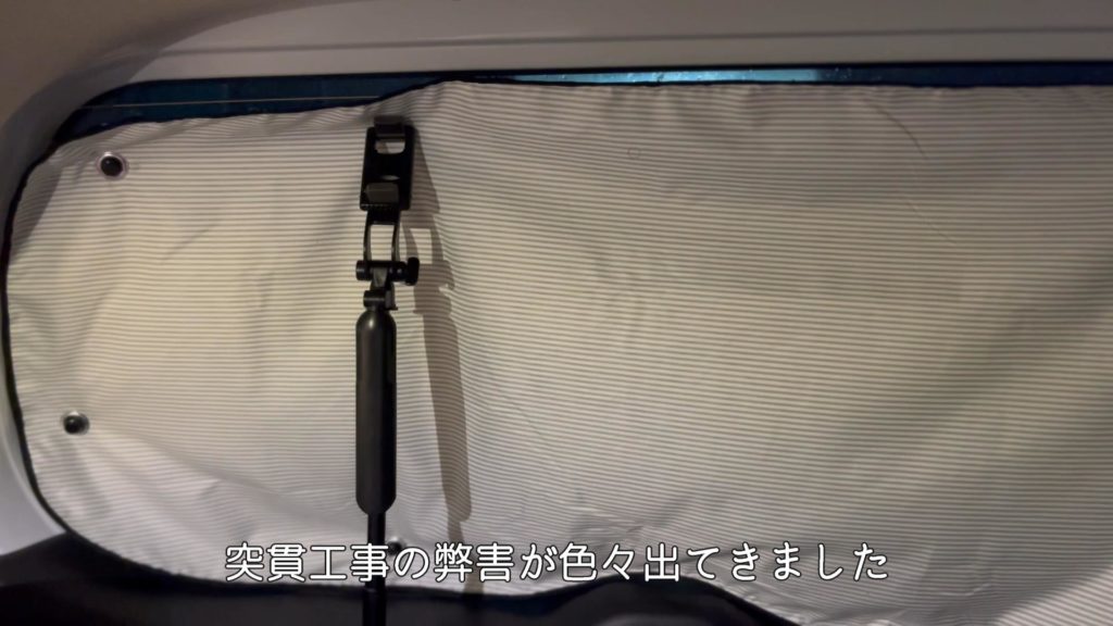 カーテンの使用も考慮しましたが、今後は夏の車内温度上昇の対策にも一役買ってくれることを期待して、しばらくはアルミシート付の自作シェードを使用していきます。