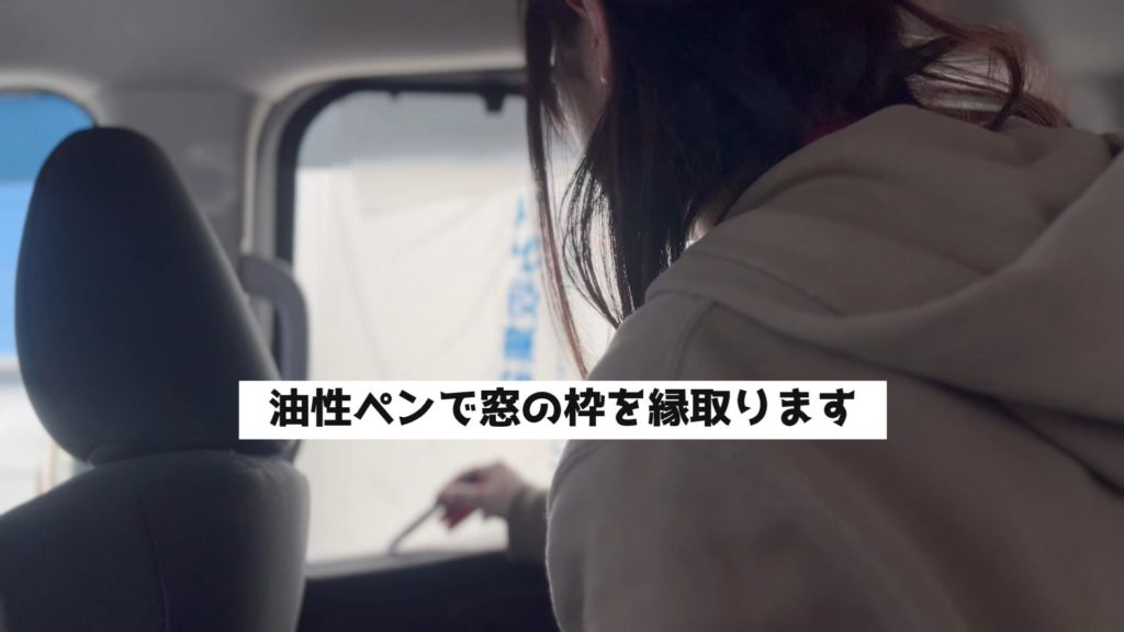 ③油性マジックペンでペン先を窓枠に沿わせるように型を取る。